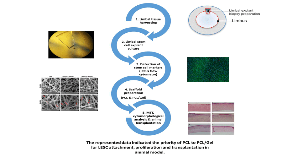 The represented data indicated the priority of PCL/Gel for LESC attachment, proliferation and transplantation in animal models.