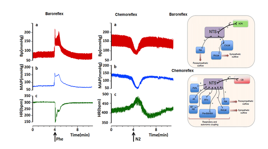 The KF played no significant role in the baroreflex, but could account for cardiovascular chemoreflex in urethane anesthetized rats.