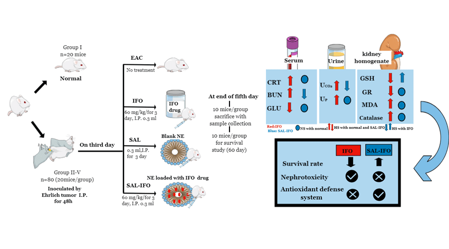 Our findings have demonstrated that incorporating IFO into a SAL oil-based NE has eliminated its nephrotoxicity in mice inoculated with the tumor.