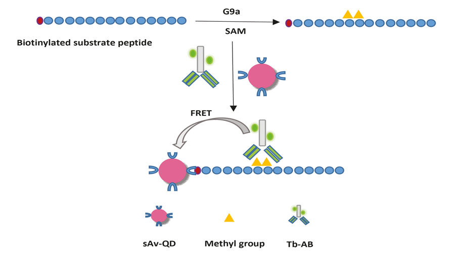 A fluorescence method based on Tb-to-QD time-resolved FRET was developed for G9a assay.