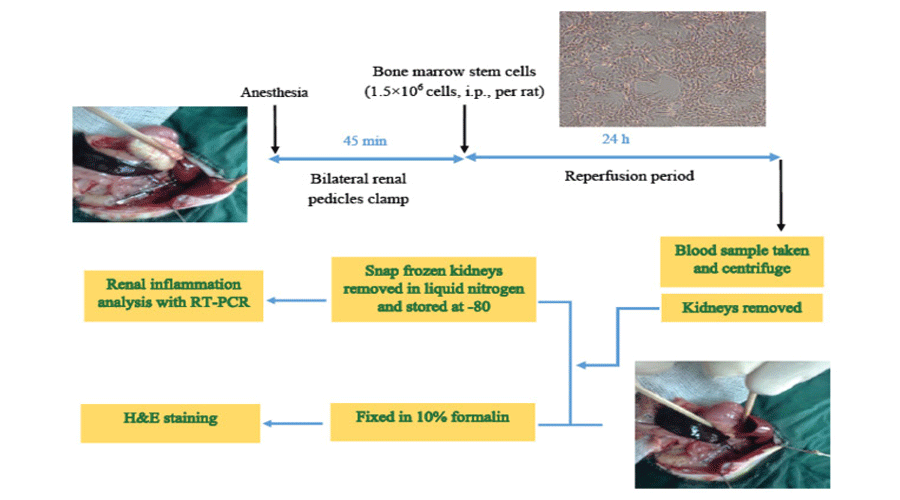 Renal functional and structural disturbance induced by renal bilateral ischemia/reperfusion. However, administration of bone marrow stem cell (1.5×106 cells, i.p., per rat) improved renal function and appearance. Protective effect of BMSCs related to modulation of mRNA expression of TLR2 and TLR4.