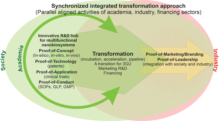 Transformation of the academic pharmaceutical and biomedical research centers towards innovative R & D hubs is a dynamic nested complex matter, which can be accomplished via a partnership with pharmaceutical and biomedical manufacturers as well as established and emerging contract research organizations.