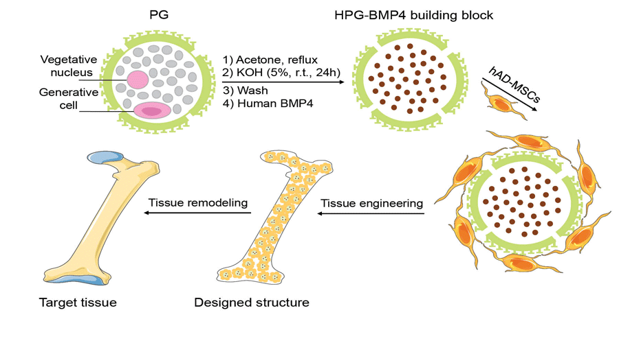 The pollen grain of Pistacia vera L. is proposed as a scaffolding building block with the encapsulation capability of bioactive compounds. A modified simple method was developed to create nonallergic hollow pollen grains (HPGs).