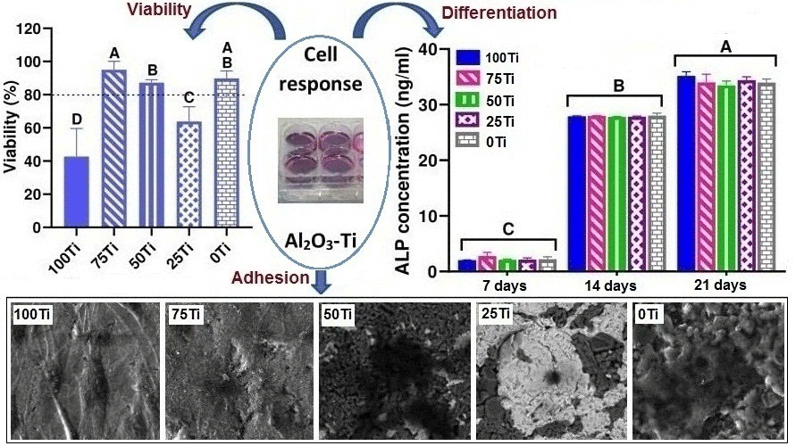 Our in-vitro findings demonstrated that the 75Ti, 50Ti, and 25Ti composites havehigh potential to be used as load-bearing orthopedic materials.