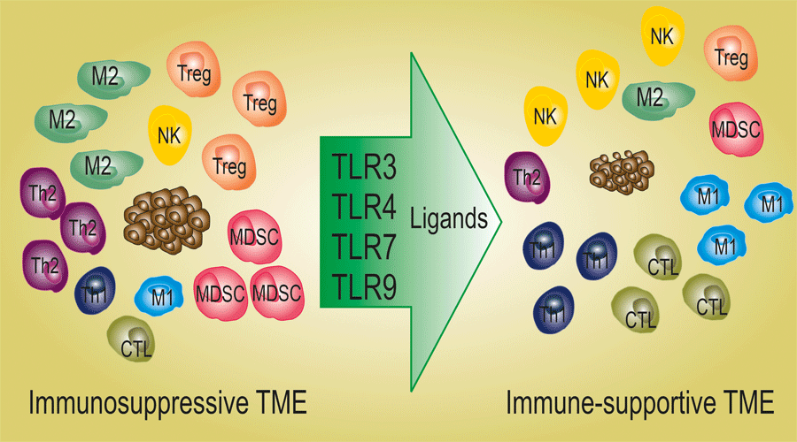 In this paper, we will review the application of the four most widely studied TLR agonists including agonists of TLR3, 4, 7, and 9 in cancer immunotherapy.