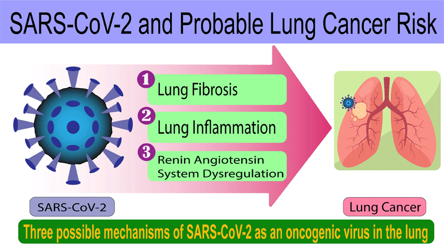 In the present perspective piece, three possible mechanisms of the novel severe acute respiratory syndrome coronavirus 2 (SARS-CoV-2) as an oncogenic virus in the lung have been discussed.