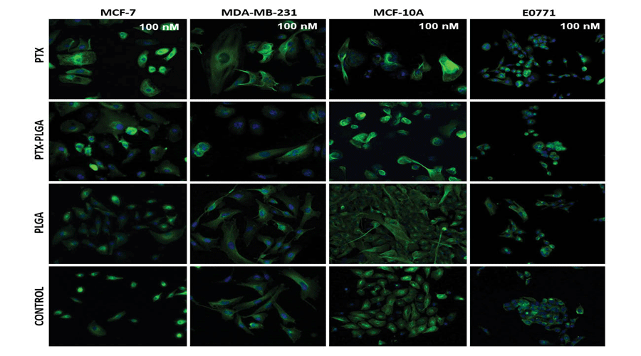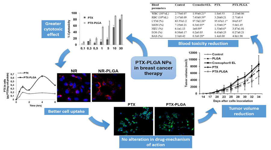 These results suggest that our PTX-PLGA NPs could be a suitable strategy for breast cancer therapy, improving antitumor drug efficiency and reducing systemic toxicity without altering its mechanism of action.