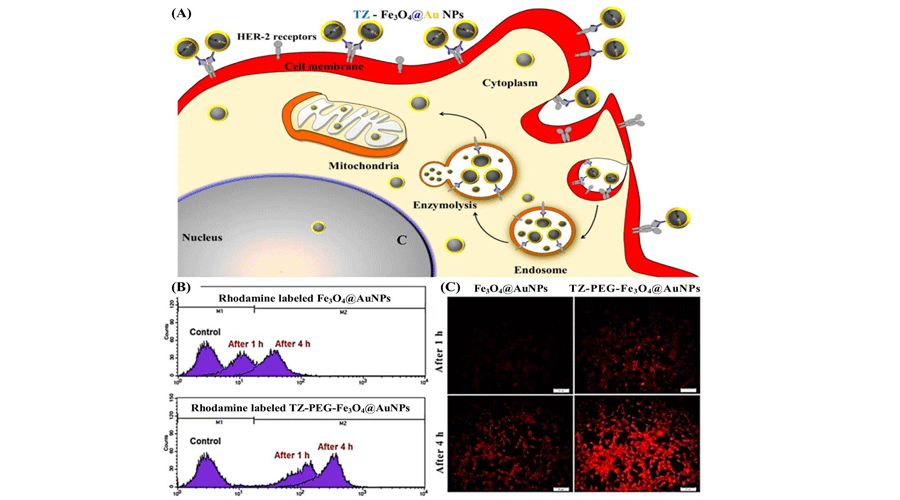 This study shows the positive effect of synthesized Trastuzumab loaded PEG-Fe3O4@Au nanoparticleson increasing the death rate of Breast cancer cells during megavoltage radiation therapy.