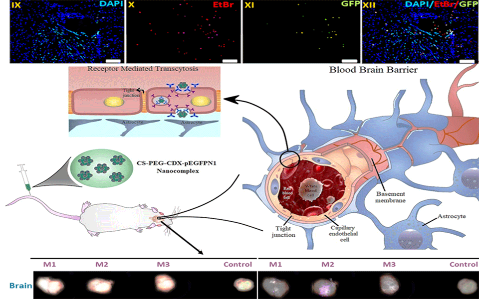 Efficient gene delivery to the brain using CDX-modified chitosan nanoparticles. Given the vital effects ofcargo's physicochemical features on the targeting ability of functionalized nanoparticles, we successfullyevaluated the brain accumulation of the mentioned nanocomplexes and their distribution in the brain ofmice