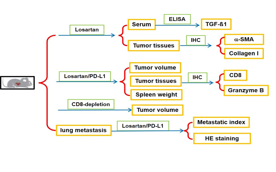 Our results indicated that losartan can modulate the tumor microenvironment, and improve the efficacy of anti-PD-L1 mAb.