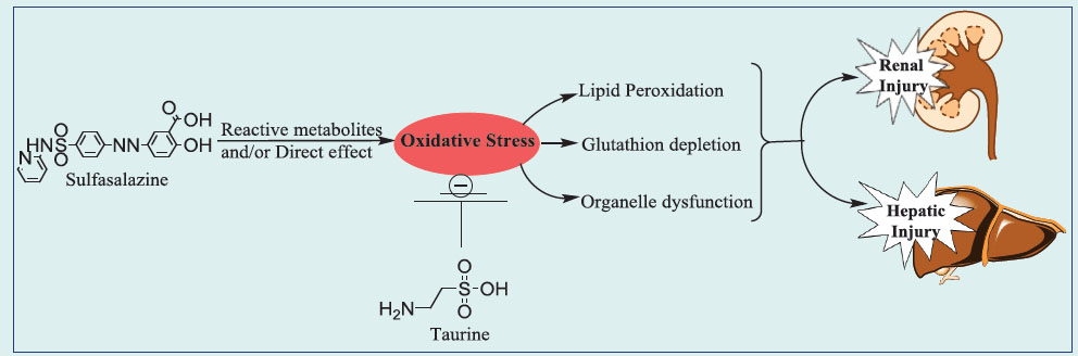 The protective properties of taurine against sulfasalazine-induced kidney and liver injury might be attributed to its ability to stabilize bio-membranes, scavenging reactive oxygen species, reducing the production of lipid peroxidation end products and finally increasing the activity of cellular defense mechanisms.