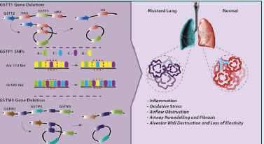 The mustard lung is the main long-term complication in sulfur mustard-exposed individuals. The difference in the severity of the mustard lung (mild, moderate, severe and very severe symptoms) suggests the involvement of genetic polymorphism in its appearance. To prove such scenario, the evaluation of polymorphism through oxidative stress and inflammation-related genes seems to be necessary. Polymorphisms of GST family play an important role in susceptibility to oxidative stress and inflammation-related disorders such as COPD,