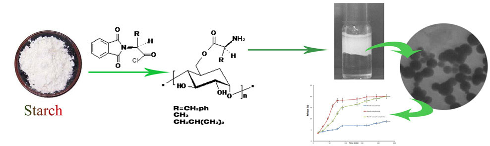 First, the amine groups of amino acids were protected using phthalic anhydride then the acidic side of amino acids were activated with chlorination using thionyl chloride, and the resultant acid chlorides were reacted with starch in aqueous media at room temperature.