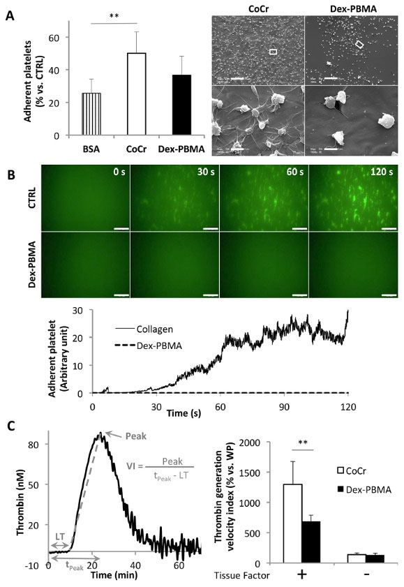 Dynamic platelet adhesion on Dex-PBMA