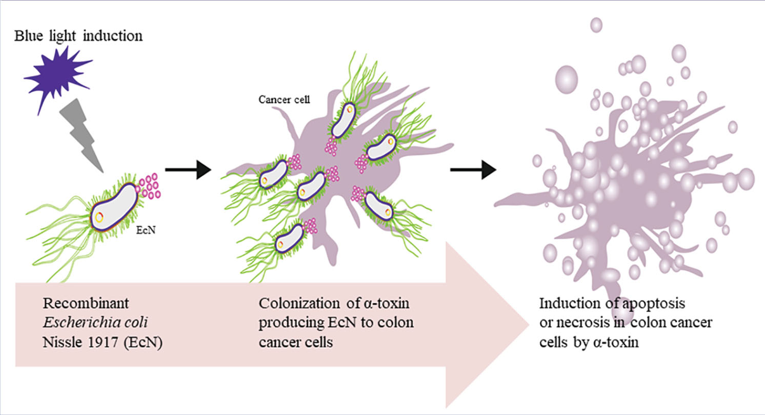 The use of live engineered bacteria, as nonpathogenic safe strains with the controllable stimuli, offer the localized and continuous drug delivery potential to prevent malignant cells from restoring their membrane by persistent representation of the toxin.