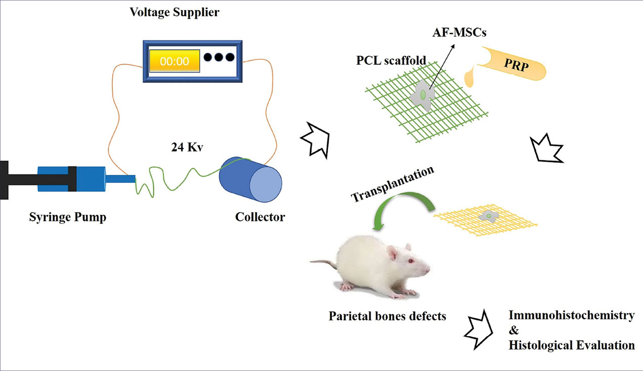 Keywords: Platelet rich plasma, Amniotic fluid-derived mesenchymal stem cells, Polycaprolacton, Fibrous scaffold, Rat cranial bone defect