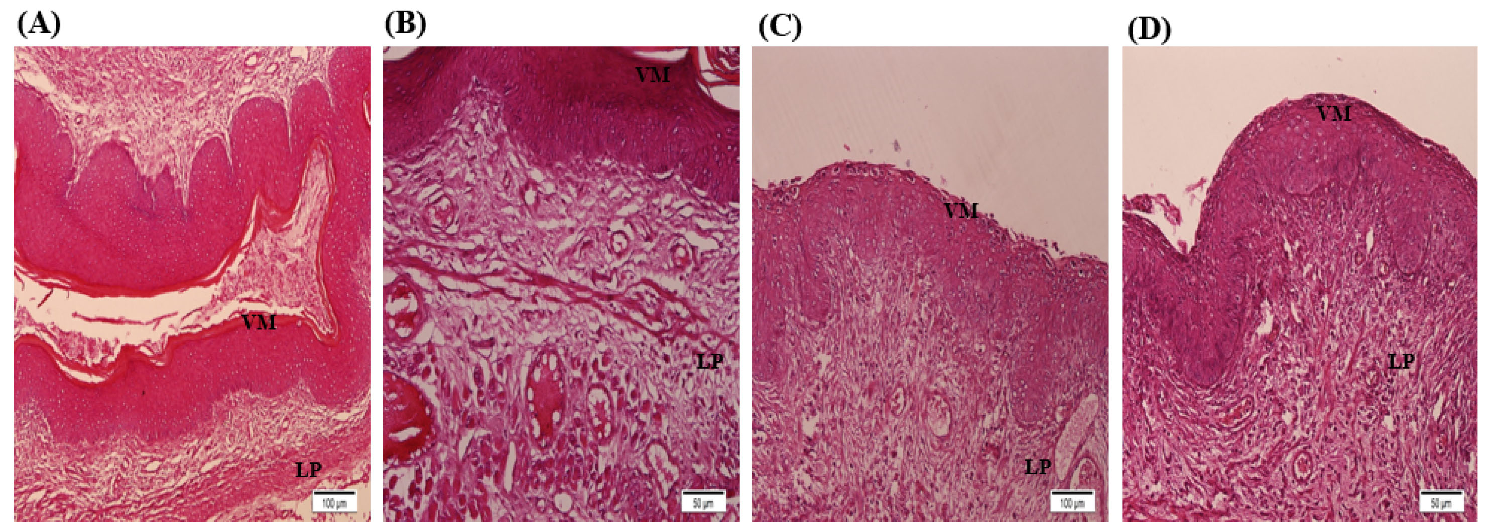 At the end of the experiments, mice were sacrificed by cervical dislocation. The vaginal tissue of mice was isolated, and placed in a Bouin fixative solution. Histological stages were dehydrated with different degrees of ethanol, clarified with xylene, embedded in paraffin. From the tissue blocks, sections with 5 μm diameter were made by Microtome, and stained with hematoxylin and eosin.