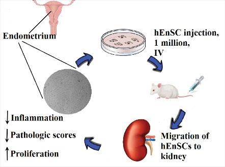 Cisplatin led to inflammation, uptake of CD3+T cells into the kidneys, histopathologic damage, decreased proliferation of tubular and glomerular cells, and impaired renal function. Following transplantation and migration of hEnSCs, inflammation in the injured kidneys improved, due to the decreased infiltration of CD3+T cells and increased Il-10 expression. Along with these changes, other side effects of cisplatin improved and kidney repair occurred. HEnSCs may ameliorate cisplatin-induced AKI through homing and differentiation, anti-inflammatory and immunomodulatory effects, and/or through paracrine effects, however further research is needed to understand the details of the pathways involved.