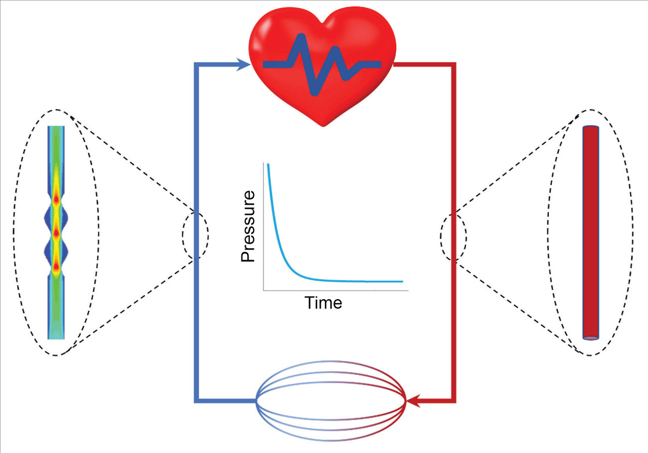 Using this model permitted us to study and analyze pressure and flow waveform propagation throughout a network of vessels, including the pressure and volume of each cardiac chamber and microcirculation region.