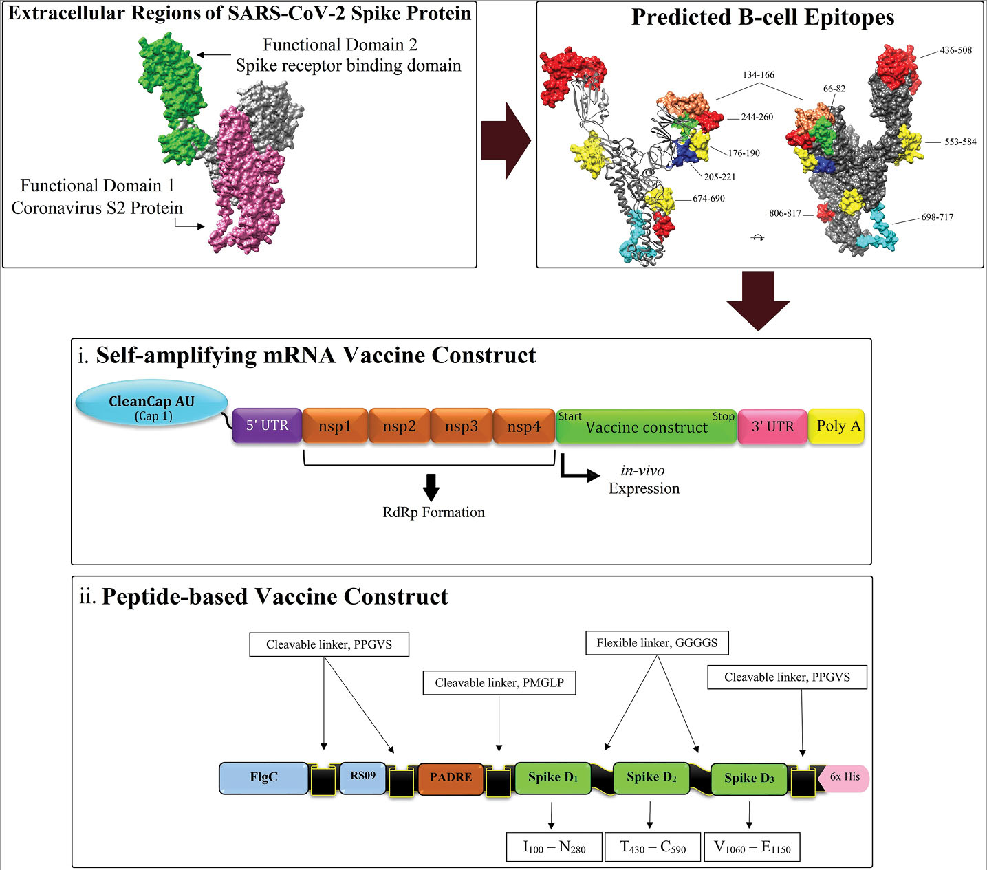 Keywords: COVID-19, Emerging virus, Epitope, SARS-CoV-2, Self-amplifying mRNA vaccine, Spike glycoprotein, Structural modeling, Pandemic