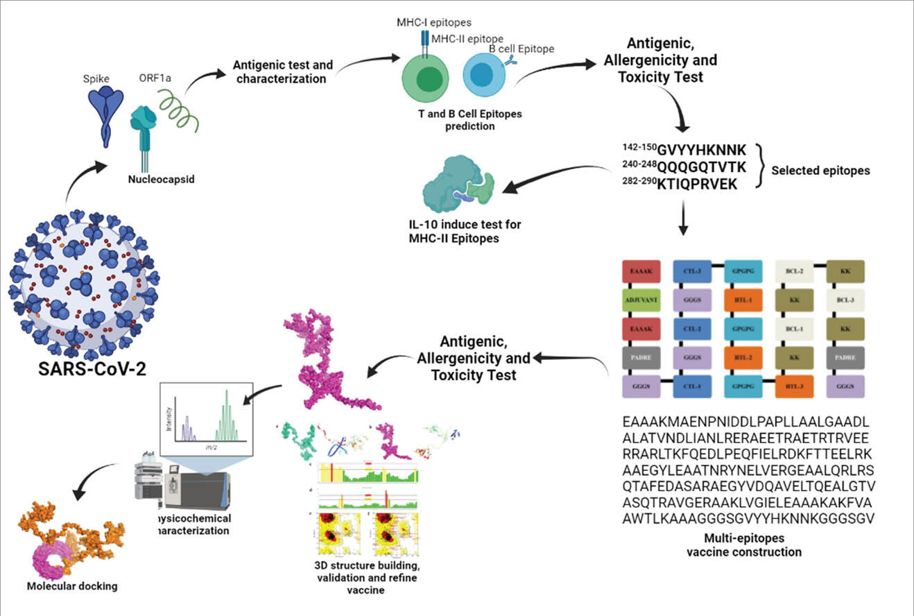 Schematic of immunoinformatics multi-epitope vaccine SARS-CoV-2 design.