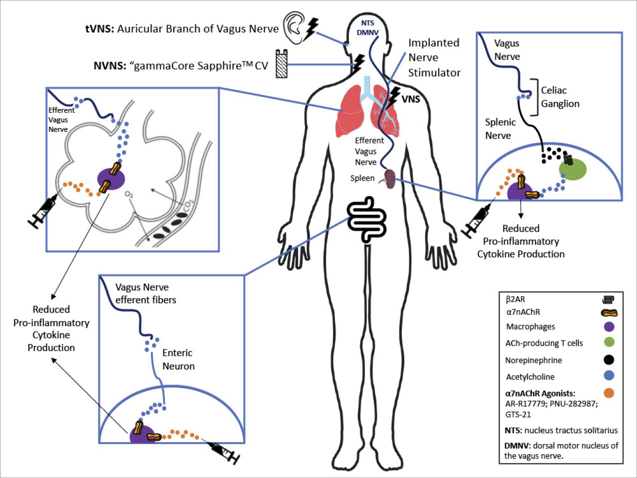 Of note, a recent study has shown that vagus nerve stimulation inhibits the acute respiratory distress syndrome inflammatory response through activation of the α7nAChR, via the CAP.