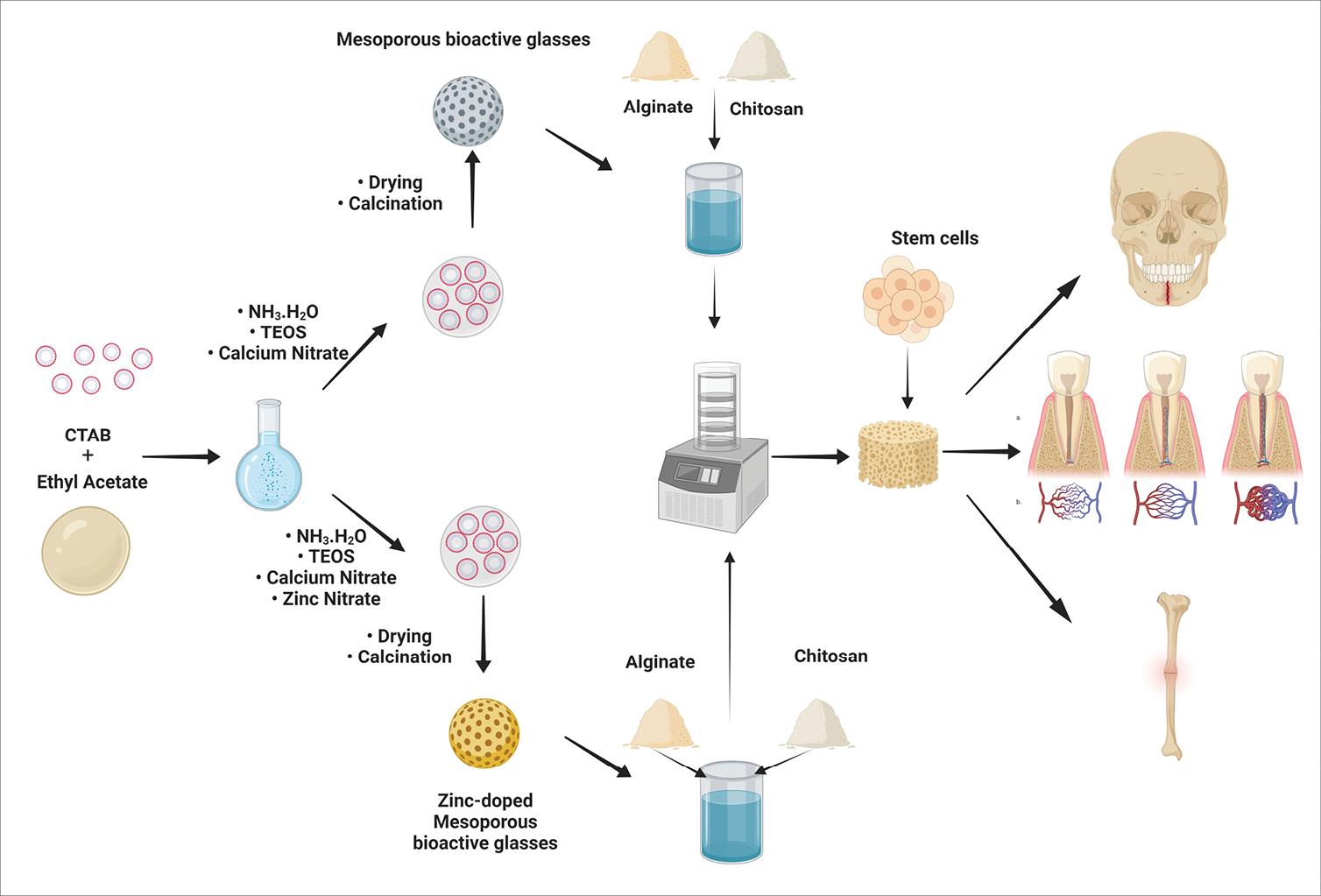 Keywords: Mesoporous bioactive glass, Zinc, Dental tissue engineering, Alginate, Chitosan